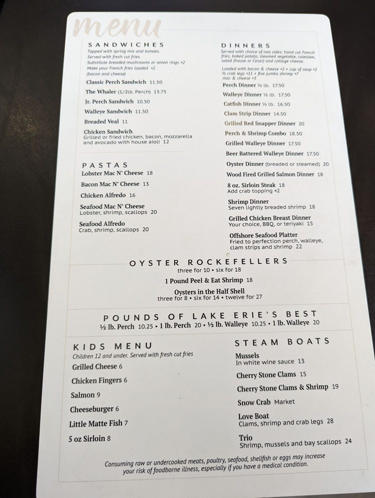 DeMore's Offshore Bar & Grill is a vibrant American restaurant specializing in seafood, located in Sandusky, Ohio. With a wide range of starters like Seafood Nachos and Crab Dip, pasta dishes including Lobster Mac N' Cheese, and flavorful quesadillas like Shrimp & Crab, this menu caters to diverse tastes. The venue offers a casual atmosphere with outdoor seating and a full bar, making it perfect for groups and families. The restaurant also provides vegetarian options and caters to various dietary preferences. Additionally, with amenities like Wi-Fi, drive-thru service, and happy hour specials, DeMore's Offshore Bar & Grill ensures a memorable dining experience for every guest. Don't miss out on their iconic dishes and vibrant ambiance for a delightful culinary journey.