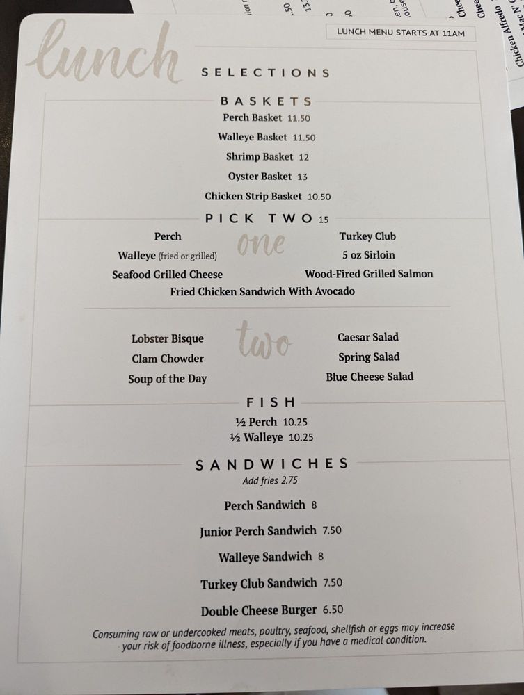 1/2 lb. perch, lettuce, tomatoes and homemade tartar sauce
